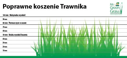 • During periods of high temperatures and water shortages (from June to August), do not mow shorter than 50-60 mm, roughly the width of three fingers.